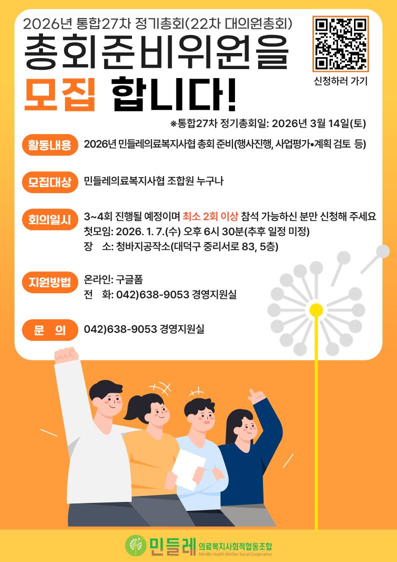 | 작성자 | 민들레의료복지사회적협동조합(mindlle) | 작성일 | 2025-12-22 | 조회수 | 4162 |