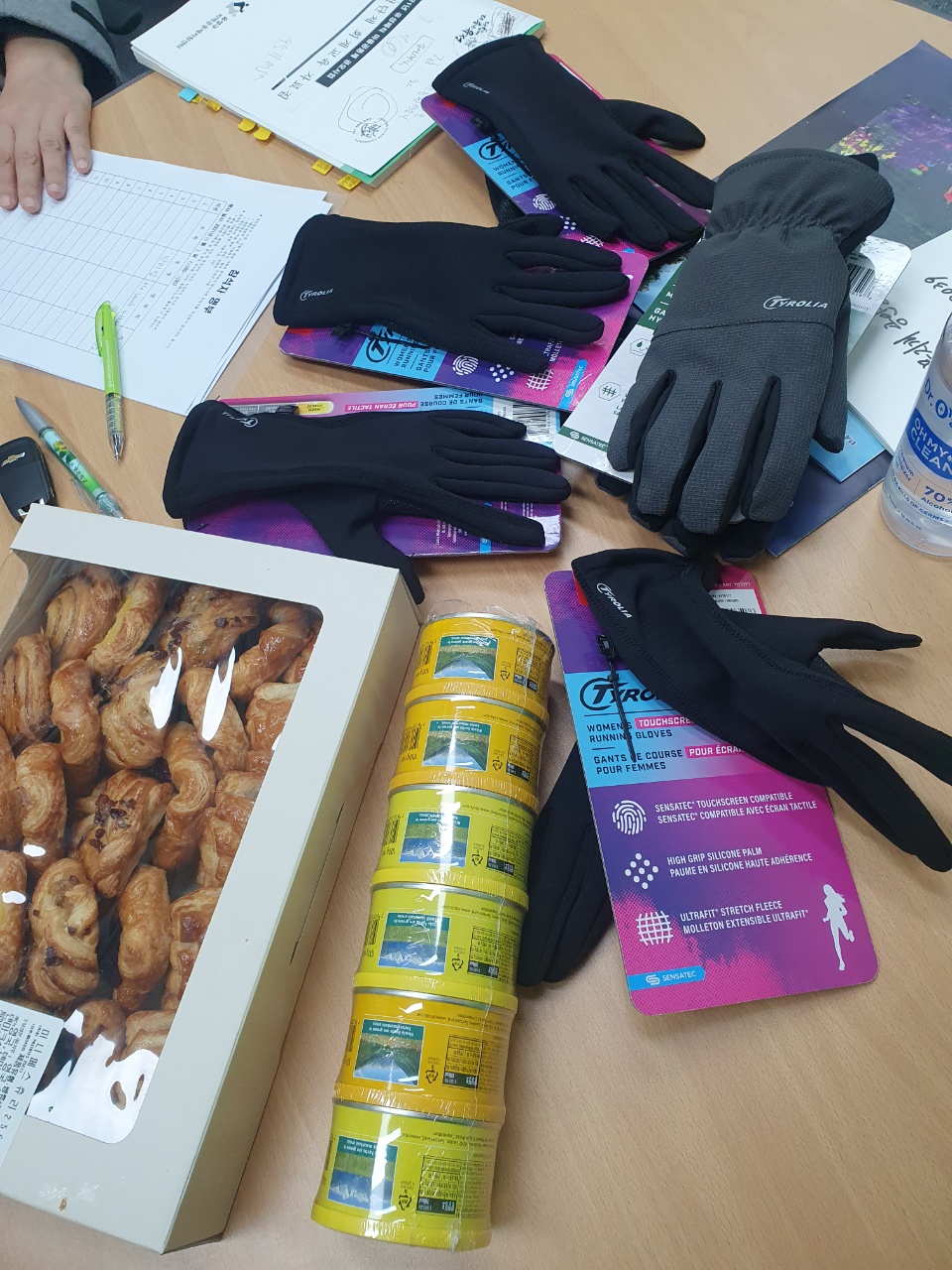 한빛 무지개 부동산에서 내년도 건강반을 어떻게 꾸릴지 논의하고 남은 잔액은 겨울 등산장갑을 구입하여 나누었다.(장갑5개)